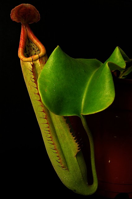 Nepenthes truncata (寶特瓶豬籠草) 原產於菲律賓民答那峨島的巨大種,是目前人工栽培下可以長出最巨大瓶子的原種 大小可以媲美2公升裝的寶特瓶,所以叫它寶特瓶豬籠草真是非常的貼切 葉肉瓶子厚實,容易照顧但是生長緩慢,由於擁有大瓶子的基因以及適應性佳 所以常被用來作為改良雜交的親本 半大不小的植株,這株是海拔約1700公尺的高地種,不過對低地的適應性也不差 |